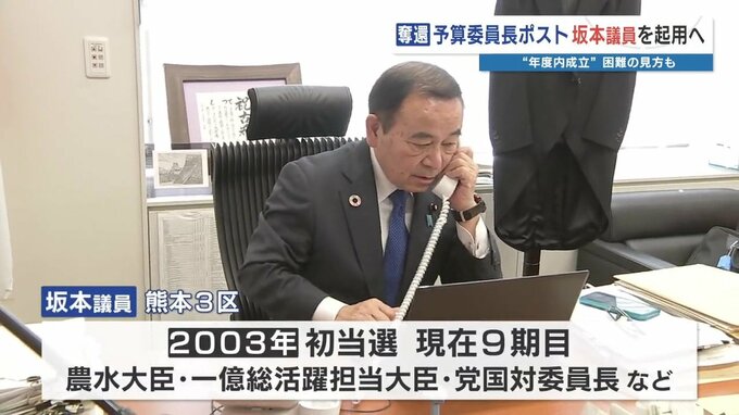 来年度予算案の今年度内成立が困難との見方も広がる中、自民党は、衆議院の予算委員長に熊本3区選出の坂本哲志議員を起用する方針です。