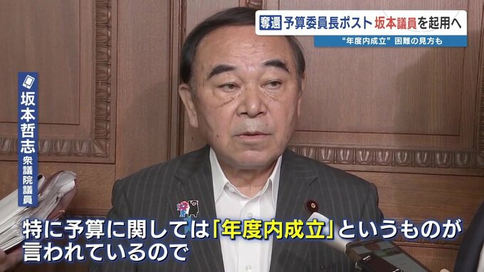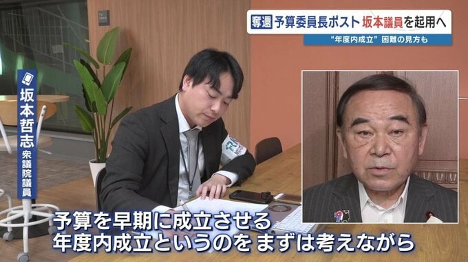 坂本議員は、正式に予算委員長に就任した場合、来年度予算案の速やかな成立を目指す考えを強調しました。