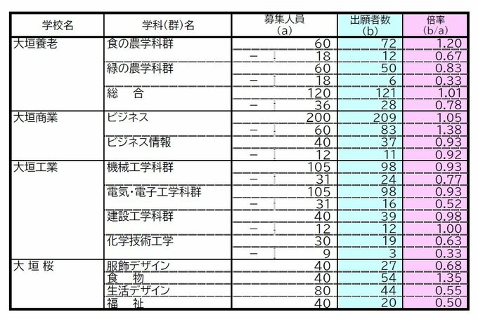 【確定版】岐阜県公立高校入試2026 出願状況・倍率 第一次・連携型選抜・通信制前期選抜の志願者数〈普通科〉岐阜1.09倍 大垣北1.09倍 岐阜北1.20倍 加納1.19倍 全校掲載・一覧(令和8年度) CBCテレビ 2026年2月17日(火) 18:32 国内 岐阜・西濃エリア(大垣北・大垣東・大垣南など)の各校出願状況・倍率