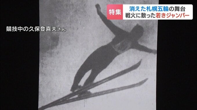 戦前の札幌オリンピックを控え、有力候補と見られていた、小樽出身の久保登喜夫さん。ジャンプ台から大きく腕を広げ、登喜夫さんが、空中に飛び出す瞬間の写真だ。
