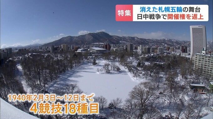 札幌オリンピックの開催期間は、1940年(昭和15)2月3日から12日まで。当時はまだ夢の技術だった、テレビ中継の実験構想もあった。札幌都心に中島公園に競技会場を新設して、アイススケートやアイスホッケーなどを実施。今も札幌市民の憩いの場である公園内の菖蒲池が、練習場とされていた。