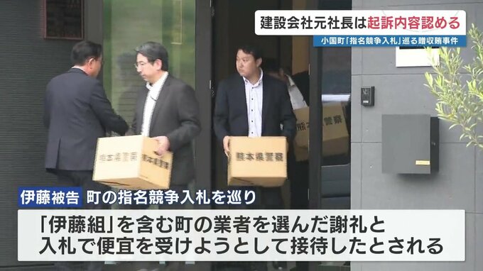 熊本県小国町の公共工事の指名競争入札をめぐり、建設会社の当時の社長が役場職員を接待したとされる贈収賄事件の裁判で、元社長は起訴内容を認めました。