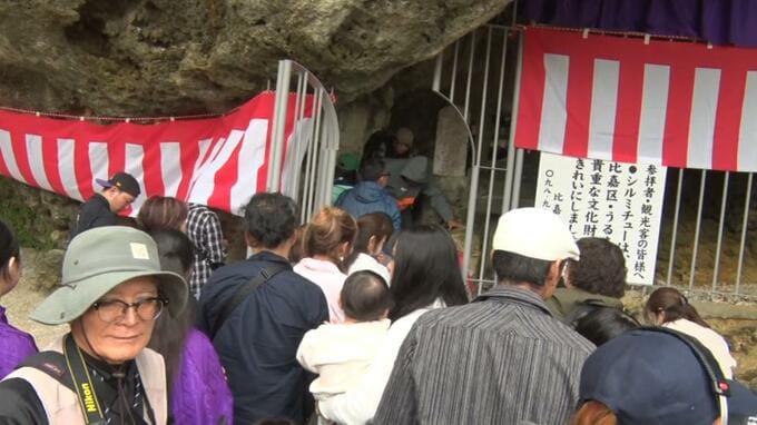 うるま市の浜比嘉島では、今年一年の安泰を祈る「年頭拝み(ニントゥウガン)」が行われました。琉球開闢(かいびゃく)の祖が住んでいたとされる洞窟「シルミチュー」で五穀豊穣や子孫繁栄を祈る大切な行事です。