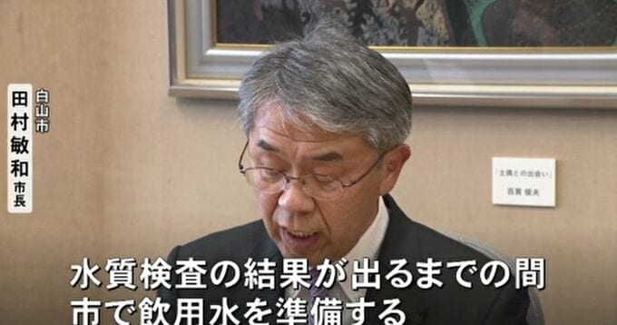白山市・田村敏和市長「自己井戸だけを利用されている人は水質検査の結果が出るまでの間、市で飲用水を準備する」