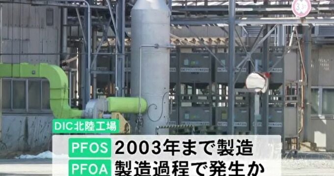 DIC北陸工場では2003年までPFOSを原料とする製品を製造、PFOAはその副産物として発生していた可能性があるということです。
