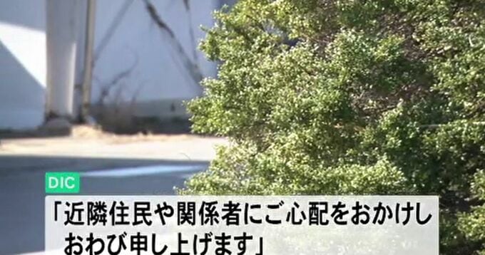 DICは「近隣住民や関係者にご心配をおかけしお詫び申し上げます」とコメントしていて、18日以降、地元住民に向けた説明会を開くことにしています。