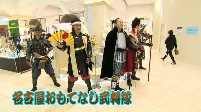 「名古屋おもてなし武将隊」が会場を盛り上げる中、開店とともに行列ができた三重の「赤福」に、奈良の「柿の葉寿司」、和歌山のミカンジュース、愛知からは揚げたてのエビを巻いた「天むす」。