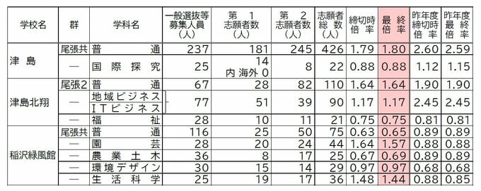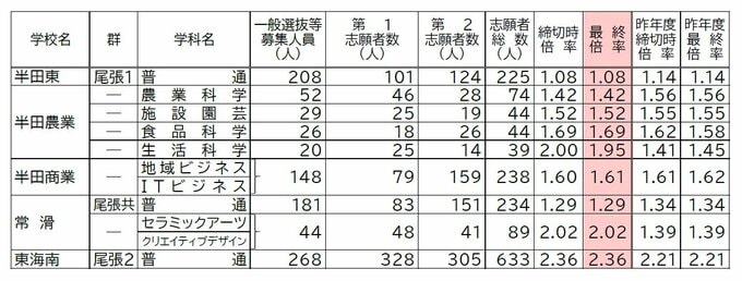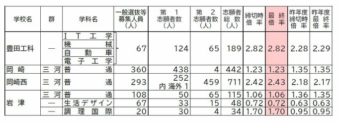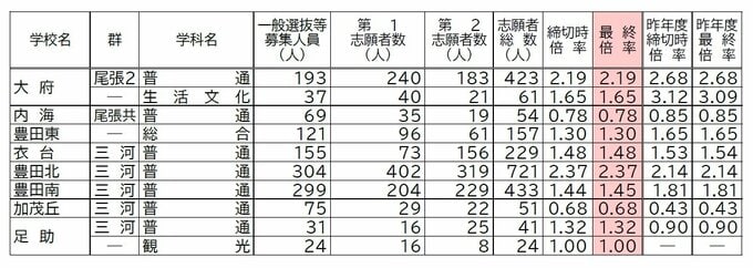 【確定版】愛知県公立高校入試2026 志願倍率 全日制課程・一般選抜など〈普通科〉旭丘1.51倍 明和1.74倍 一宮1.44倍 岡崎1.23倍 千種2.39倍 令和8年度の出願状況(全校掲載・一覧) CBCテレビ 2026年2月17日(火) 19:50 国内 Aグループ 一宮商業、津島、大府、岡崎など
