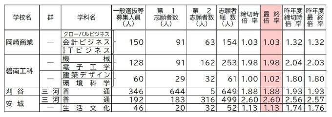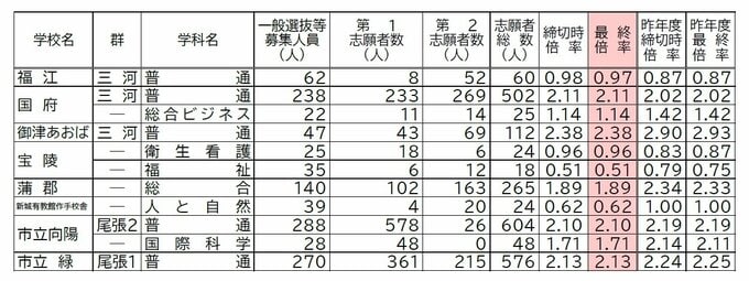 【確定版】愛知県公立高校入試2026 志願倍率 全日制課程・一般選抜など〈普通科〉旭丘1.51倍 明和1.74倍 一宮1.44倍 岡崎1.23倍 千種2.39倍 令和8年度の出願状況(全校掲載・一覧) CBCテレビ 2026年2月17日(火) 19:50 国内 Aグループ 安城農林、西尾東、向陽など