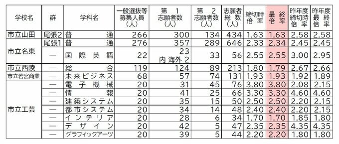 【愛知県公立高校入試2026】志願倍率 全日制課程・一般選抜など〈普通科〉旭丘1.51倍 明和1.74倍 一宮1.44倍 岡崎1.23倍 千種2.40倍 令和8年度の出願状況(全校掲載・一覧) 2026/02/16