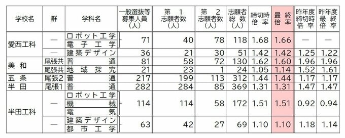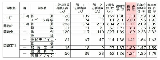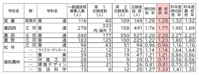 【確定版】愛知県公立高校入試2026 志願倍率 全日制課程・一般選抜など〈普通科〉旭丘1.51倍 明和1.74倍 一宮1.44倍 岡崎1.23倍 千種2.39倍 令和8年度の出願状況(全校掲載・一覧) CBCテレビ 2026年2月17日(火) 19:50 国内 Bグループ 津島東、半田、豊田西など