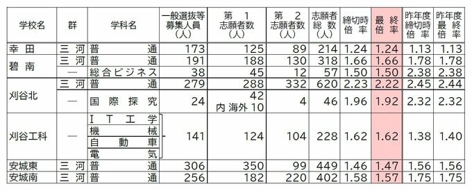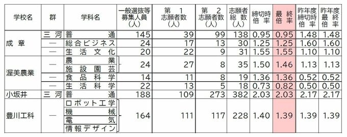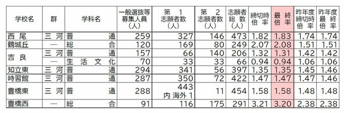 【確定版】愛知県公立高校入試2026 志願倍率 全日制課程・一般選抜など〈普通科〉旭丘1.51倍 明和1.74倍 一宮1.44倍 岡崎1.23倍 千種2.39倍 令和8年度の出願状況(全校掲載・一覧) CBCテレビ 2026年2月17日(火) 19:50 国内 Bグループ 豊橋西、刈谷北、小坂井など