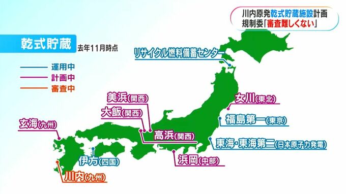 「難しい審査にならない」との認識を示した山中委員長。乾式貯蔵施設は愛媛県の伊方原発など4か所で運用が始まっています。今後も佐賀県の玄海原発など6か所で計画されています。