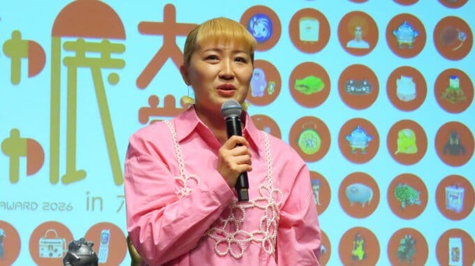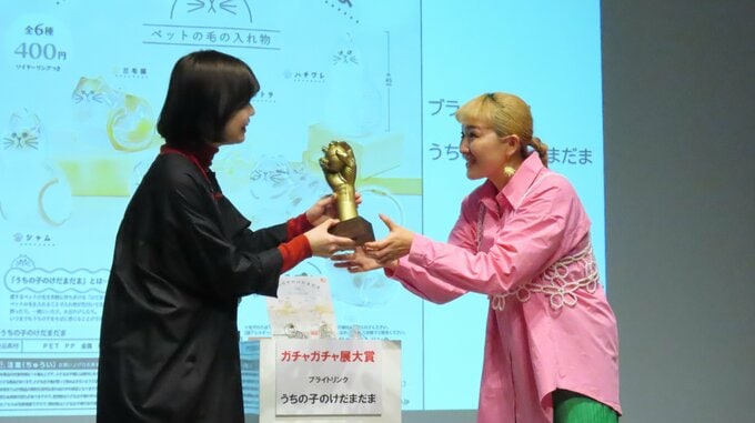 タレントの丸山桂里奈さんが、「ガチャガチャ展 in 六本木」の会場内で行われた「ガチャガチャ展大賞」発表・表彰式に登壇しました。