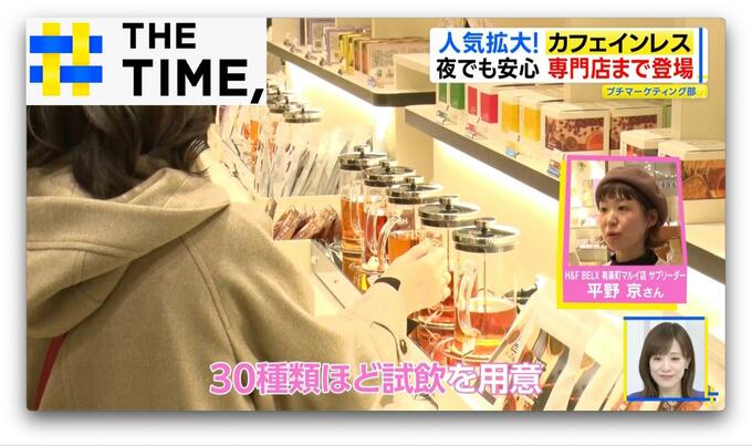 フルーツのフレーバーなど50種類以上の“ノンカフェインティー”を販売しているのは、『H&F BELX』(全国に20店舗以上展開)