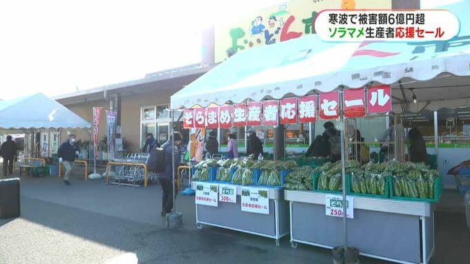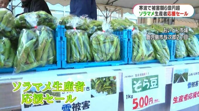 今月上旬の寒波で南薩を中心にソラマメなどの豆類が被害を受け、指宿市では被害額が6億円を超える見込みです。生産者を応援しようと、鹿児島市で販売会が開かれました。