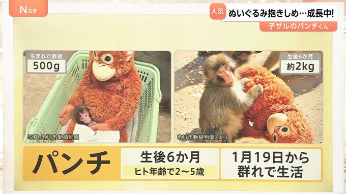 ぬいぐるみを卒業する日も近い?群れに馴染み始めたパンチくん