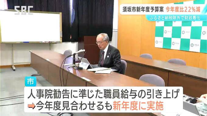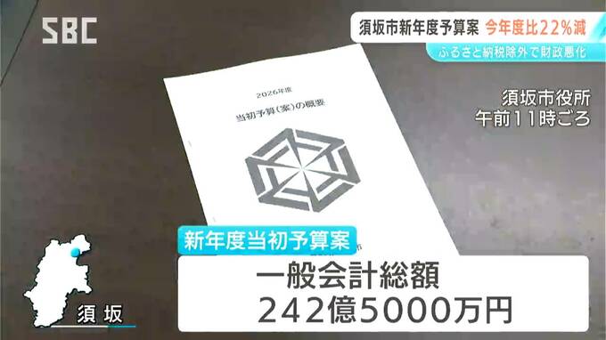 須坂市は、総額242億5000万円の新年度当初予算案を発表しました。ふるさと納税制度からの除外で財政状況が厳しくなる中、今年度当初予算より20パーセント以上の減額です。