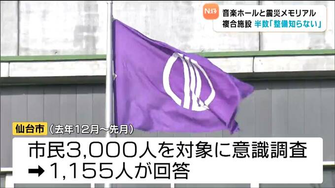 仙台市が整備する音楽ホールと震災メモリアル拠点の複合施設について、市が市民を対象に行ったアンケート調査の結果、半数以上が「整備されることを知らない」と回答したことが分かりました。
