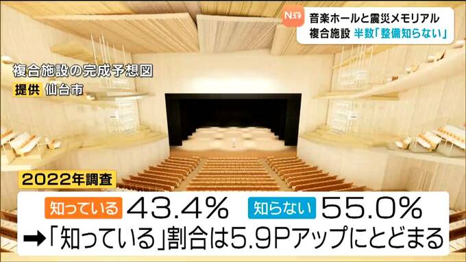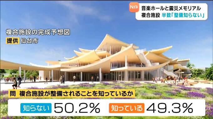 その結果、市が整備する音楽ホールと震災メモリアル拠点の複合施設について、「整備されることを知っているか」という問いに「知らない」と答えた人が50.2%と半数以上に上っていたことが、関係者への取材で分かりました。