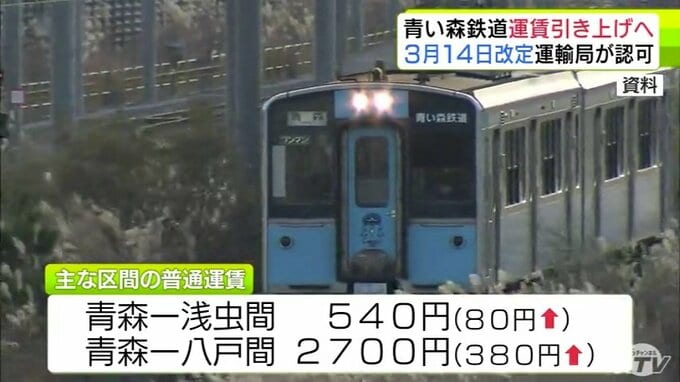 青い森鉄道が運賃引き上げへ 全線開業後で初めて 3月14日から改定