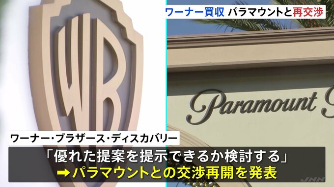 アメリカメディア大手のワーナー・ブラザース・ディスカバリーが、パラマウント・スカイダンスと買収条件について再交渉すると発表しました。ワーナーをめぐっては、ネットフリックスがすでに買収の合意を発表して…