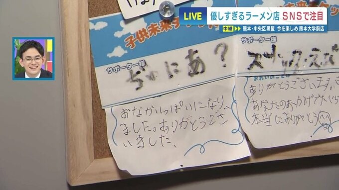 券売機の向かい側は、ボードに収まりきらない程のチケットが並び、子どもたちからは手書きのお礼メッセージも残されています。