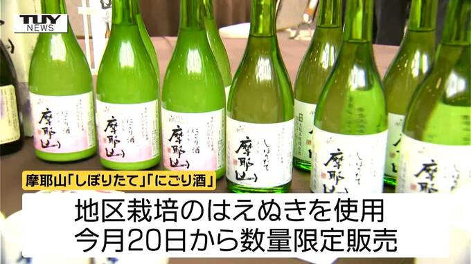摩耶山は酒田市の東北銘醸が温海地区のコメで作る日本酒です。今年も、地区で栽培されたはえぬきを使った摩耶山「しぼりたて」と「にごり酒」が、今月20日から数量限定で販売されるとあって、集まった関係者は特別な酒に舌鼓をうっていました。