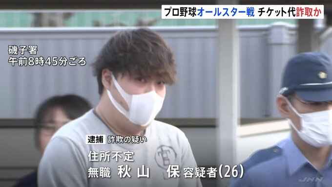 プロ野球のオールスターゲームのチケットを売り渡すと嘘をつき、金をだまし取ったとして、無職の男が逮捕されました。警察によりますと、無職の秋山保容疑者(26)は、おととし7月、明治神宮野球場で行われるプロ…