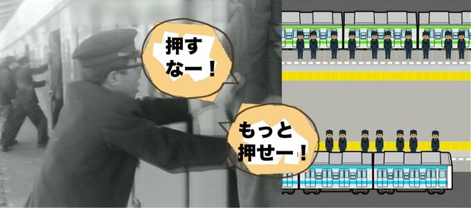 駅にはいわゆる「押し屋」が配置され、乗客を車内に押し込む光景が日常となりました。