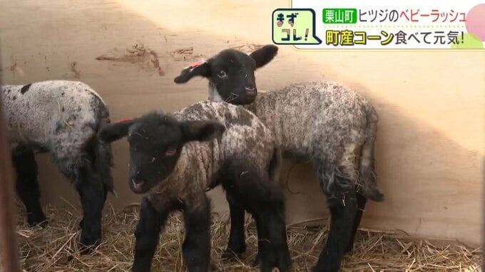赤ちゃん羊たちはぴったりとくっついて暖をとったり、地元産のコーンが入った餌をもりもり食べたり、愛らしい姿を見せています。