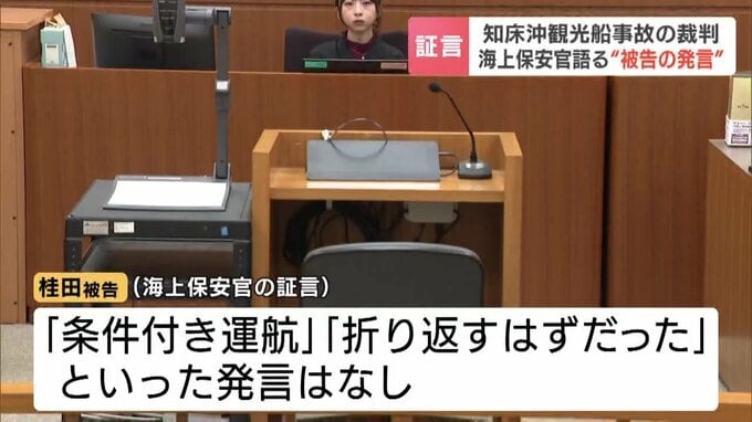 北海道知床沖の観光船沈没事故の裁判で、事故当日に運航会社の社長から話を聞いた海上保安官が、「条件付き運航や折り返すはずだったという発言は無かった」と証言しました。
