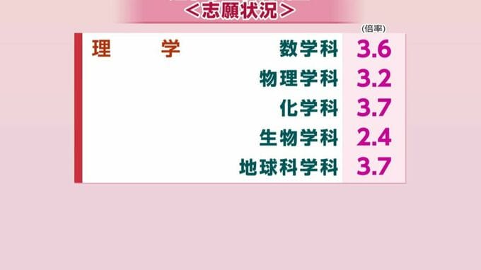 【岡山大学】2026年度「一般選抜志願者倍率」(前期日程) 経済学部4.0倍 医学部医学科3.1倍 薬学部薬学科3.9倍【18日発表】 RSK山陽放送 2026年2月18日(水) 19:34 国内 理学部 岡山大学 前期日程 各学部の受験倍率 一覧画像 理学部の化学科と地球科学科は、ともに3.7倍でした。理学部の学科全てを合わせた倍率は3.3倍となっています。