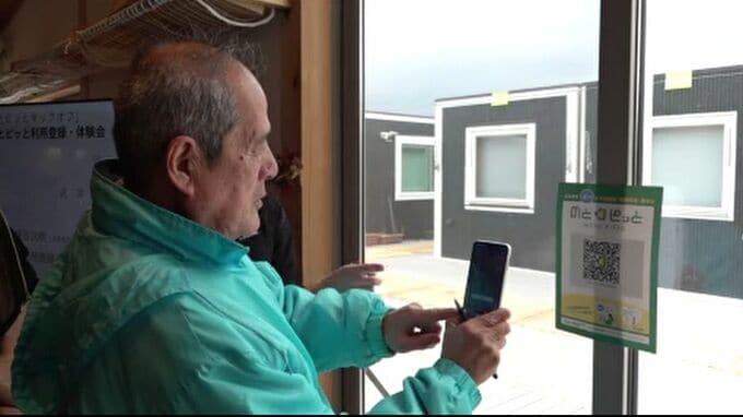 QRコードにスマホをかざして、ポイントをゲットするのは、石川県輪島市の仮設住宅などで暮らす住民たちです。