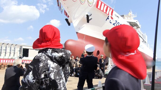 式典には、関係者30人のほか、地元の小学生も招かれ、新たな船出を見守りました。