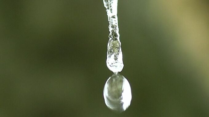雪に覆われた岡山県北の渓谷では滝の飛沫が凍りつき、幻想的な風景が広がっています。岡山と鳥取の県境に位置する真庭市の山乗渓谷です。