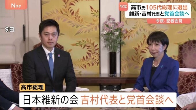 高市総理はきょう、第105代内閣総理大臣に選出されたことを受け、まもなく日本維新の会と与党党首会談に臨みます。森英介 衆院議長「高市早苗君を本院において内閣総理大臣に指名することに決まりました」高市総…