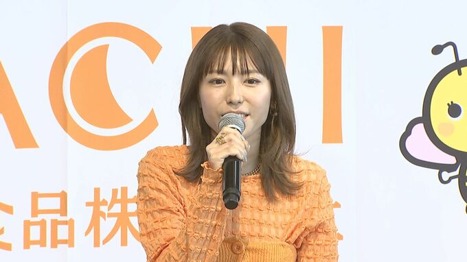 タレントの若槻千夏さんが「ハチ食品 2026年春夏向け新商品発表会」に登壇しました。