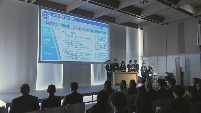 18日は、会津・中通り・浜通りの3つのワーキングチームが、これまで企業訪問やワークショップを通して議論してきたことを発表しました。県内の推計人口は、今年1月時点で171万2635人と、前の年よりも2万5000人以上減少していて、学生たちが若者の視点で危機感を共有しました。