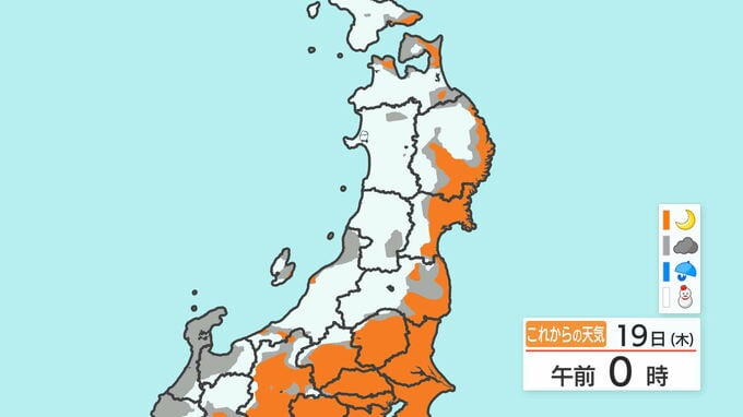 18日夜に寒冷前線が東北日本海側を通過 積乱雲発達で「ひょう・落雷」の恐れ 19日明け方にかけて激しい突風に注意 IBC岩手放送 2026年2月18日(水) 17:41 国内 東北地方の防災事項 東北日本海側を中心に、19日明け方にかけて、竜巻などの激しい突風や落雷、ひょうに注意してください。 19日(木)午前0時 東北地方の天気 発達した積乱雲の近づく兆しがある場合には、頑丈な建物内に移動するなど、安全確保に努めてください。