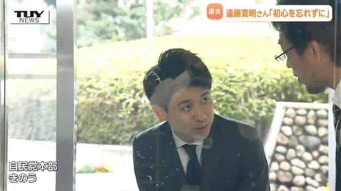 特別国会の開会に先立ち、きのう行われた党主催の新人研修会。県1区で初当選した遠藤寛明さんが、関係者に一礼をして会場に向かう姿がありました。