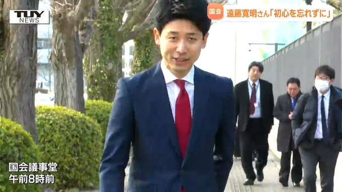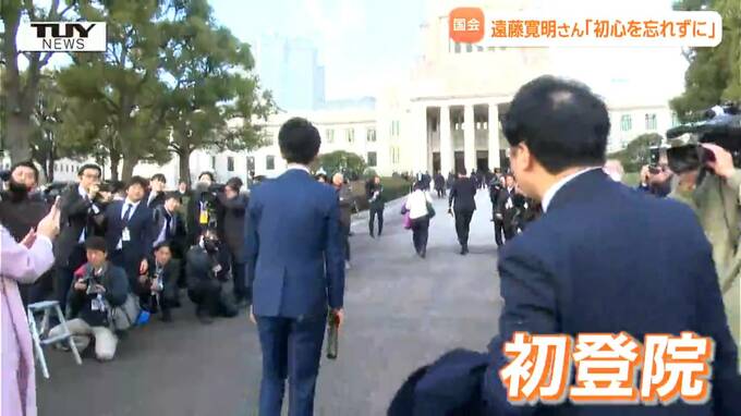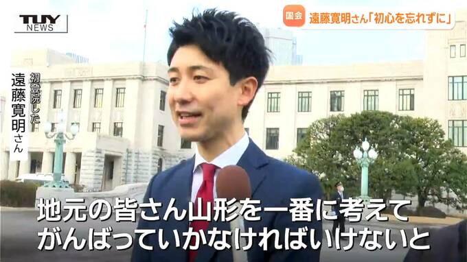 初登院した 遠藤寛明さん「感謝の気持ちと初心を忘れずに、地元の皆さん山形を一番に考えてがんばっていかなければいけないと、改めて今国会の目の前に立って思ったところであります」