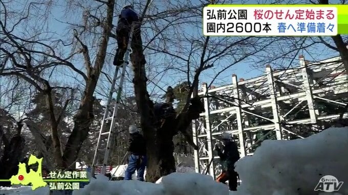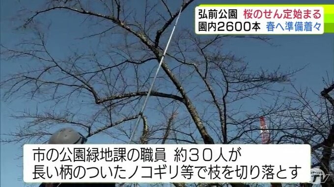 約2600本の桜がある“桜の名所”「弘前公園」でせん定作業が始まる 2026年も桜花爛漫の春へ 青森県弘前市