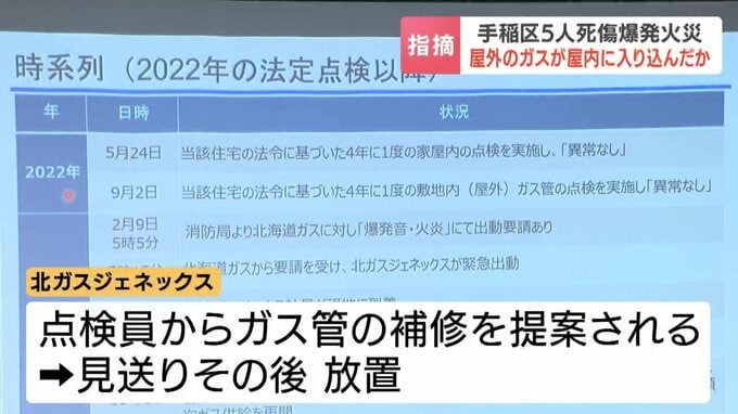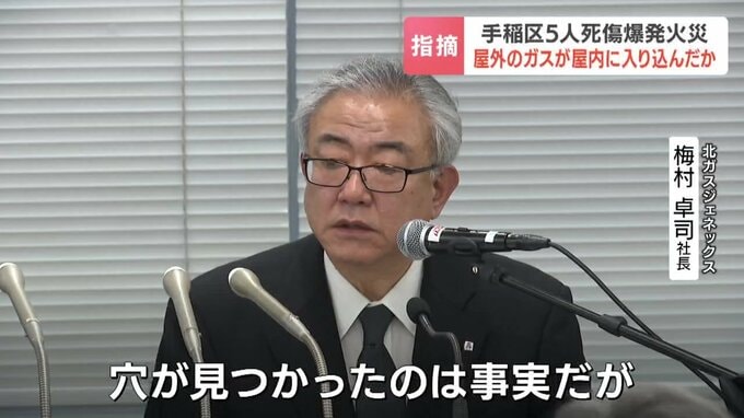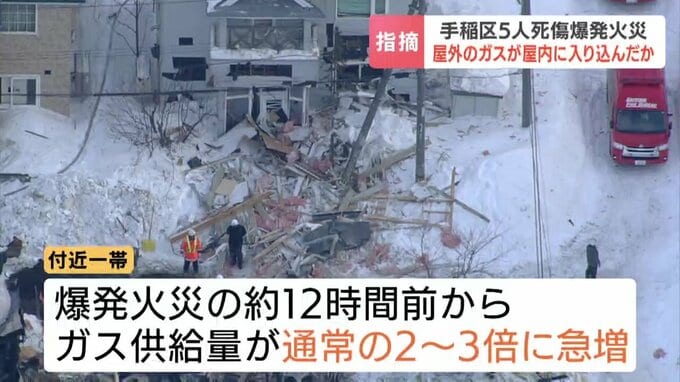 札幌市手稲区で5人が死傷したガス爆発火災で、火元の住宅の外のガス管に直径2ミリほどの穴が見つかりました。