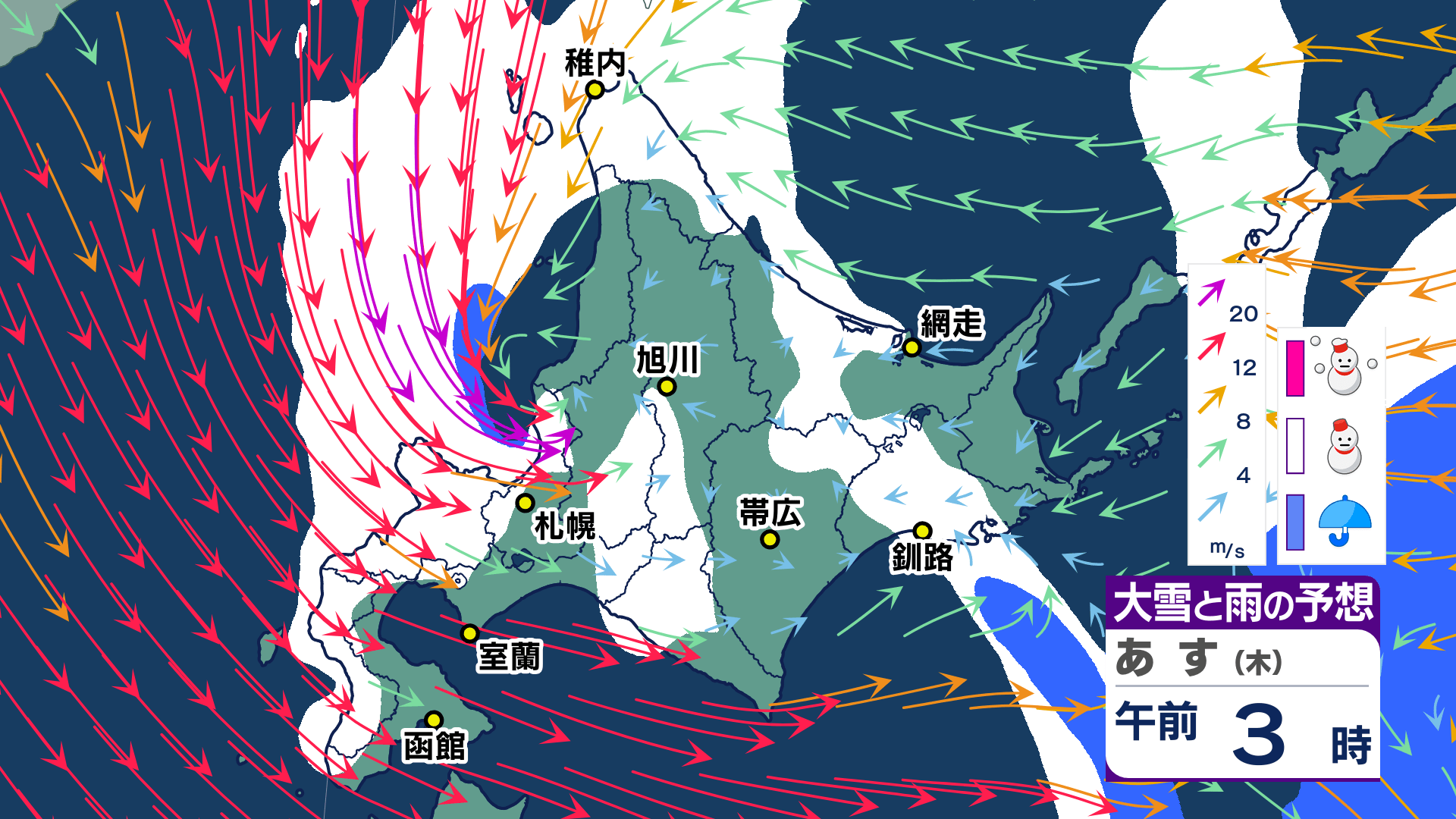 北海道で再び大雪に 土日は気温上昇で4月並みに【落雪事故に注意】しまり雪では1㎥で300㎏の重さ 北海道放送 2026年2月18日(水) 18:23 国内 天気 児玉晃 19日(木)の雪のシミュレーション