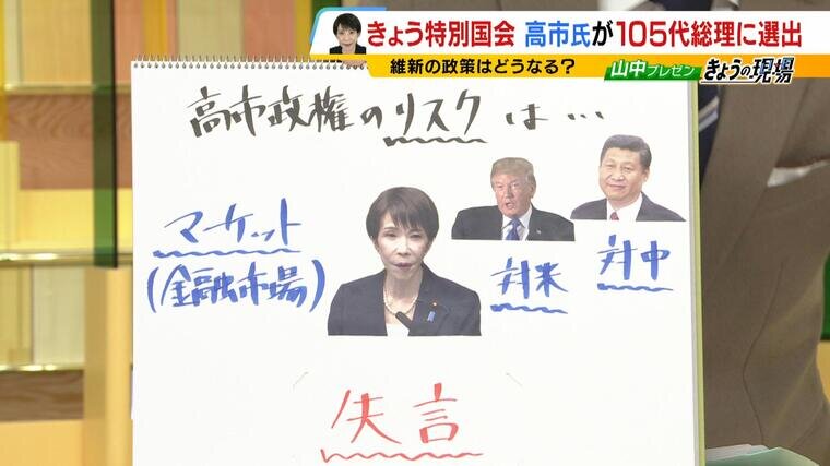高市政権に死角はあるのか?考えられるリスクとして今野氏が挙げるのが、「マーケット(金融市場)」「対米・対中関係」「失言」の3つです。