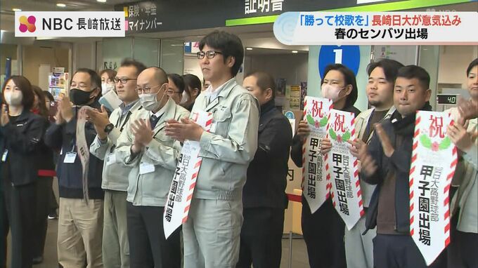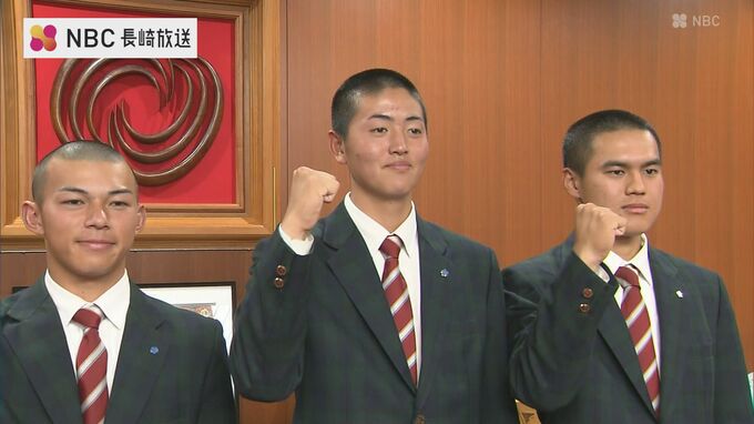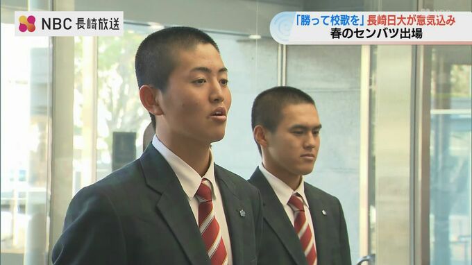 ことしの春のセンバツ甲子園に出場する長崎日大野球部のメンバーが18日、諫早市長を表敬訪問し「勝って校歌を歌いたい」と意気込みを語りました。