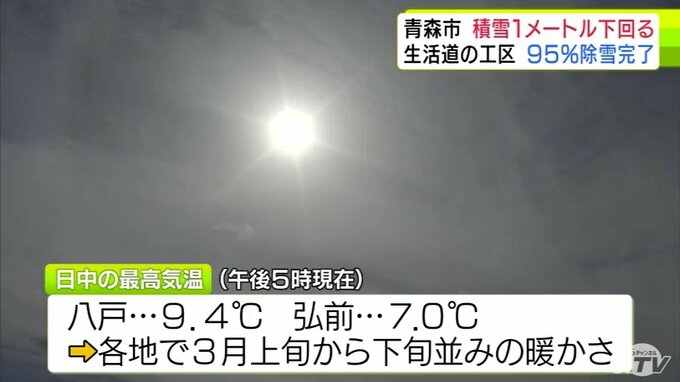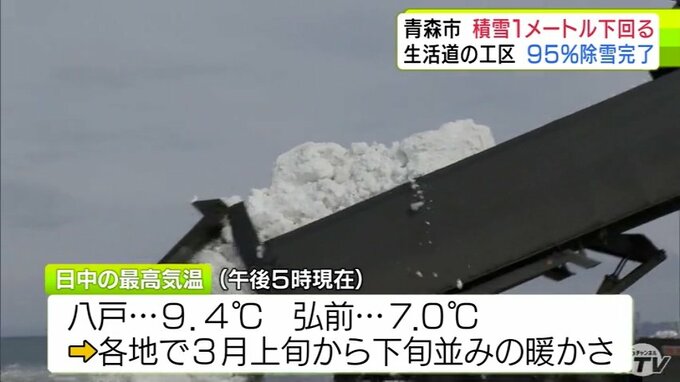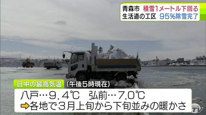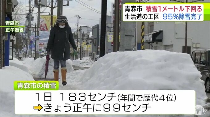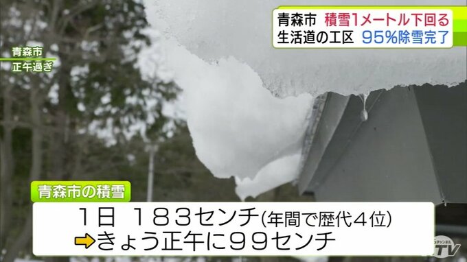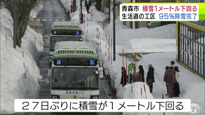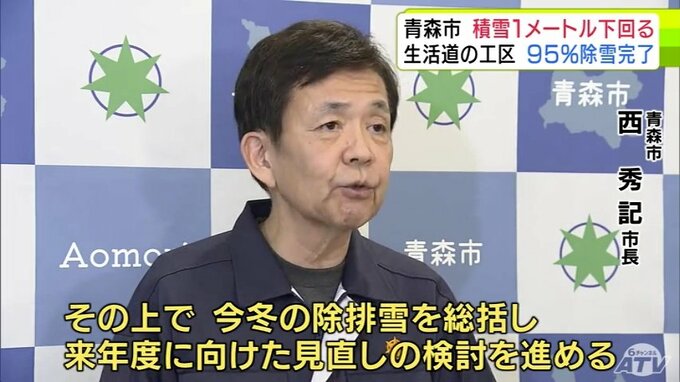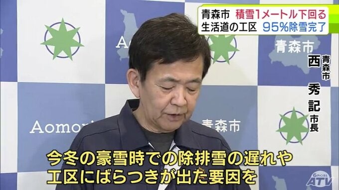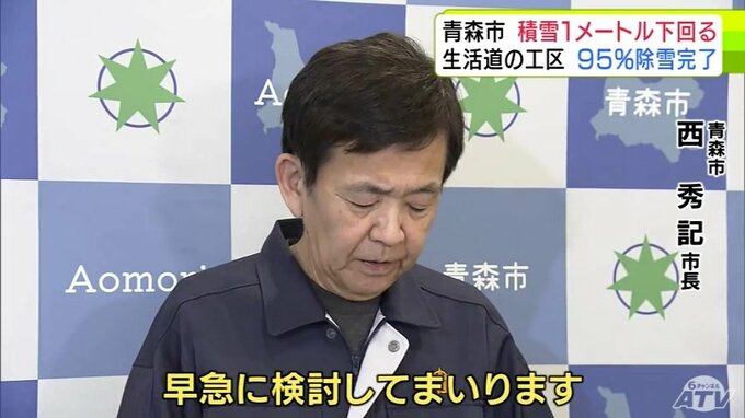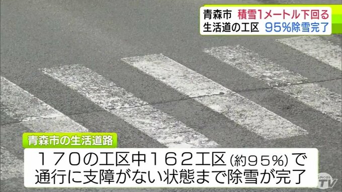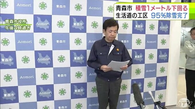 青森市で27日ぶりに積雪1mを下回る 市内に170ある生活道路の工区のうち95%にあたる162の工区で通行に支障がない状態まで除雪完了 西秀記 市長は来年度の除排雪体制の見直しにも言及 青森テレビ 2026年2月18日(水) 21:00 国内
