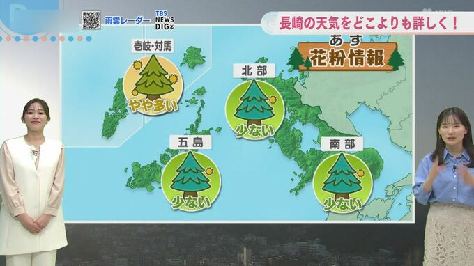 壱岐・対馬では花粉飛散がやや多いと予想されています。