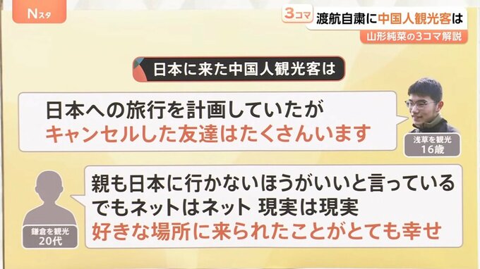 日本への渡航自粛が呼びかけられている中、実際に日本に来た中国人観光客に話を聞いてみると、世代間でギャップがあるようです。